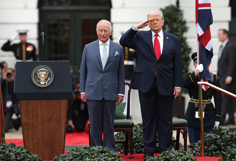 Home WASHINGTON, DC – APRIL 28: King Charles III stands with U.S. President Donald Trump as he salutes during the national anthem during a state arrival ceremony on the South Lawn of the White House on April 28, 2026 in Washington, DC. President Trump and King Charles III will participate in a number of activities including a bilateral meeting in the Oval Office, with the king later addressing a joint meeting of the United States Congress. (Photo by Kevin Dietsch/Getty Images) WASHINGTON, DC - APRIL 28: King Charles III stands with U.S. President Donald Trump as he salutes during the national anthem during a state arrival ceremony on the South Lawn of the White House on April 28, 2026 in Washington, DC. President Trump and King Charles III will participate in a number of activities including a bilateral meeting in the Oval Office, with the king later addressing a joint meeting of the United States Congress. (Photo by Kevin Dietsch/Getty Images)