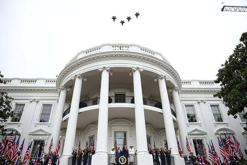 Fighter jets fly over the White House during the State Visit of King Charles III and Queen Camilla at the White House. Photo credit: ZUMAPRESS.com / MEGA