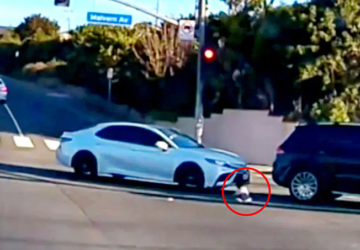 A mother was arrested after her toddler fell out of a moving SUV and landed in the roadway in Southern California. Shocking video shows a black SUV driving in Fullerton, California on