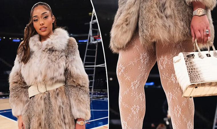 Newly engaged socialite Jordyn Woods stopped to sign autographs before heading into Madison Square Garden in NYC to watch her fiancé Karl-Anthony Towns take on the
