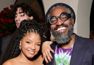 Halle Bailey and André 3000 posed for a photo at the 2025 GQ Men of the Year at Chateau Marmont on Thursday, November 13, 2025 in Los Angeles, California. Halle wore a sequined