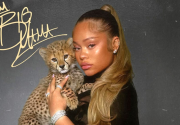 Rapper Latto shared the cover art for her upcoming album, BIG MAMA, on Instagram. The image shows her holding a Cheetah cub while heavily pregnant. She captioned the photo